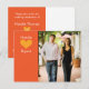 Suchen Sie nach einer Save the Date Karte, die Spaß und modern macht? Schauen Sie nicht weiter, fügen Sie Ihr Bild und Ihre Informationen zu dieser Save the Date Karte. Auf Anfrage können Sie auch die passenden Farben auswählen. Orange mit hellerem orangefarbenem Herz und weißem Text.