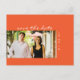 Die klaren Linien dieses modernen Designs unterstreichen Ihr schönes Foto. Fügen Sie Ihr Bild hinzu und passen Sie die Postkarte nach Ihren Wünschen an. Auf Anfrage können Sie die Farben anpassen. Orange mit weißem Text dargestellt.
