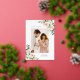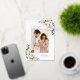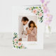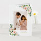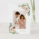 Elegante, blumengeschmückte Osterkarte mit Blumensträußen und weißen Blume mit üppig grünen Blätter, die Ihr Foto umrahmen. Personalisieren Sie die botanische Osterkarte mit einem individuellen Gruß und Ihrem Familiennamen in echter Goldfolie. Fügen Sie Ihre getippte oder handgeschriebene Nachricht der Innenseite der Goldfolie Osterkarte hinzu. Auf der Rückseite der Karte befindet sich ein rot-rosa Aquarellbild.