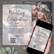 Freuen Sie sich auf eine elegante Hochzeitsfeier mit einem stilvollen 2-Foto-All-in-One-Angebot mit QR-Code-UAWG. Bilder und alle Formulierungen sind einfach zu personalisieren, um alle Details Ihrer Wahl. (IMAGE PLACEMENT TIP: Eine einfache Möglichkeit, ein Foto genau so zu zentrieren, wie Sie es gewollt haben, ist es, es einzuschneiden, bevor Sie es auf die Zazzle-Website hochladen.) Das moderne, minimalistische Schwarz-Weiß-Design zeigt zwei Bilder des verlobten oder neuvermählten Ehepaares, eine trendige handgeschriebene Schriftzeichen-Kalligraphie und eine schicke Schreibmaschinentypografie. Durch das Scannen des QR-Codes mit ihrem Telefon, werden die Gäste direkt auf die Hochzeitswebsite geschickt, um auf die Einladung zu antworten. Ein Online-uAwg verringert die Wahrscheinlichkeit, dass die Karten in der E-Mail verloren gehen. Es ist auch vielseitiger, da man detailliertere Informationen frage, wie zum Beispiel Essensauswahl, Lebensmittelallergien und Gesangswünsche. Alle Antwortinformationen können individuell angepasst oder gelöscht werden. Diese Einladung ist eine stilvolle Möglichkeit, Hochzeitsgäste fragen, sich auf Ihre bevorstehende Feier zu freuen.