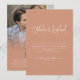 Foto Overlay Script QR Boho Wedding Terracotta. Drucken oder Drucken. Bohemische Farbtöne in Erdfarben, cremefarbene Typografie auf weicher Terrakotta. Ändern Sie den Text nach Bedarf, und ersetzen Sie das Foto der Probe auf der Rückseite durch Ihren eigenen Favoriten. Mit einem QR-Code auf Ihrer Hochzeitswebsite, damit Ihre Gäste es einfach scannen und mehr Details sehen können. Ihr QR-Code wird automatisch generiert, um den Beispielcode im Design zu aktualisieren, wenn Sie einfach die Beispiel-URL in der Vorlage mit Ihrer eigenen Hochzeitswebsite-URL ändern