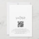 Foto Overlay Informal Script QR Code Hochzeit Abend Party. Ein vollständig anpassbares Design, das digital verfügbar und gedruckt ist. Ändern Sie den Text nach Bedarf, und ersetzen Sie das Beispiel-Foto durch Ihren eigenen Favoriten. Mit einem QR-Code auf Ihrer Hochzeitswebsite auf der Rückseite, sodass Ihre Gäste können einfach Ihre Hochzeitswebsite zu UAWG besuchen und mehr Details zu sehen. Ihr QR-Code wird automatisch generiert, um den Beispielcode im Design zu aktualisieren, wenn Sie einfach die Beispiel-URL in der Vorlage mit Ihrer eigenen Hochzeitswebsite-URL ändern