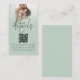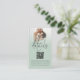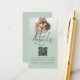 Foto Overlay Script QR Code Hochzeitssage Details. Klein und bequem zu umschließen mit Ihren Einladungen. Bitte laden Sie Ihre Gäste ein, alle Informationen, die sie benötigen, wie Unterkunft und Anfahrtsbeschreibung über Ihren QR-Code zu Ihrer Hochzeitswebsite zu sehen. Dieses moderne schlanke grüne Design mit Ihrem Lieblingsfoto hinter einer abgestuften, getönten Schicht, hat ein informelles Set Typografie in schwarz für die Hauptüberschrift Details und die Erholung des Textes, die Sie leicht personalisieren können. Ersetzen Sie das Beispiel-Foto durch Ihren eigenen Favoriten der Landschaftsorientierung.