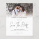 BITTE BEACHTEN Sie, dass Sie für diese Größe (4,5 x 5,6") zwei Papieroptionen im Bereich Budget auswählen können. Für dieses Produkt würde ich sehr empfehlen, das Halbglas, das ein 110 gsm Kartenstock ist, ähnlich dick wie eine Postkarte. Die Satin Option ist ein viel dünneres Papier 80gsm. Der Standardwert ist Set to semi-glloss. ***BITTE BEACHTEN SIE, dass es eine Einladung pro Blatt gibt. Budget Foto Overlay Skript Save the Date ist in einem modernen Set Skript. Ersetzen Sie das Beispiel-Foto durch Ihren eigenen Favoriten.