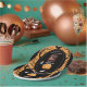 Mit den knebeligen Halloween-Party-Tellern der können Sie sich beim Essen amüsieren! Dieses festliche, orange- und schwarze Design mit spielerischen Geisterbats und sprichwörtlichen Silhouetten eignet sich perfekt für ein nicht zu beängstigendes Halloween-Fest. Ideal für Halloween-Partys, Schulveranstaltungen, Trick-oder-Leckerei-Ansammlungen oder Herbstgeburtstage. Personalisieren mit Namen und Foto oder Ihrem eigenen Bild