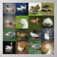 Ein hochauflösendes Foto-Flickwerk aus 16 verschiedenen quadratischen Fotos von Enten, Gänsen, Goslings, Schwänen und anderen Vögeln.