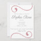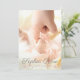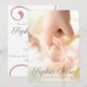 Foto Pink Swirl Script Baby Girl Birth Ankündigung kommt mit einem Helden-Foto auf der Vorderseite mit einem Baby-Name-Skript-Overlay. Die Rückseite hat alle Details zwischen rosa-wirbelfarbenen Dekorationen