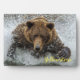 Plaque mit einem Foto von einem Bären im Wasser im Yellowstone Nationalpark gezeigt. Passen Sie dieses Objekt an oder kaufen Sie, wie es ist. Bild