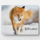 Plaque mit einem Foto von einem wilden Roten Fuchs im Winter im Yellowstone Nationalpark gezeigt. Passen Sie dieses Objekt an oder kaufen Sie, wie es ist. Bild