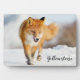 Plaque mit einem Foto von einem wilden Roten Fuchs im Winter im Yellowstone Nationalpark gezeigt. Passen Sie dieses Objekt an oder kaufen Sie, wie es ist. Bild