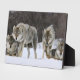 Plaque gezeigt mit einem Foto-Druck eines Packs wilder Wölfe im Yellowstone Nationalpark. Passen Sie dieses Objekt an oder kaufen Sie, wie es ist. Bild