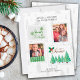 Special Delivery of Warm wünscht Weihnachtskarte mit Vintagen Porto-Briefmarke, personalisiert mit 2 Ihrer Lieblings-Fotos und kundenspezifischen Gruß innen. Das Design besteht aus 4 Briefmarke, die mit Weihnachtsworten (Merry & Bright, Let it Snow and Merry Christmas) und einem Hintergrund doodled Kiefernbäume in einer allgemeinen Farbpalette von grün und grau.