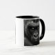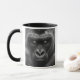 Ein schwarzes Bild eines Gorillas zeigt einen intensiven und bedrohlichen Ausdruck. Der Blick des Tieres mit hellen und glänzenden Augen scheint das Ziel zu durchdringen und dem Bild eine fast übernatürliche Dimension hinzuzufügen. Die Textur der Gorilla und die Details ihrer markierten Merkmale kommen durch subtile Beleuchtung und Schatten hervorragend hervor. Einige Lichtsplitter im unscharfen Hintergrund verleihen der Szene einen dramatischen Effekt, der den Eindruck der Rohkraft und Majestät dieses beeindruckenden Tieres verstärkt. Dieses Porträt ist eine Würdigung der Stärke und Eleganz der Wildtiere.