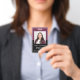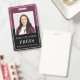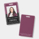 Ein modernes Foto druckt Abzeichen ID mit dem Namen auf bordeauxrot. .Fügen Sie einfach Ihr Foto und Ihre Informationen hinzu. Diese Version wird mit einem Lanyard geliefert, aber Sie können Ihren Stil der Befestigung wählen, die beinhaltet, Lanyard, Metallklammer oder Retraktable, oder keine Befestigung.