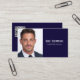 Verbessern Sie Ihren ersten Eindruck mit dieser professionellen Foto-QR-Code-Flugkarte in dunkelblau und weiß, die exklusiv für Piloten, Fluglehrer und Luftfahrtprofis entwickelt wurde, die selbstsicher führen.