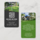 QR Code Visitenkarte für Lawn Care. Foto beidseitig, senkrechte Visitenkarte. Moderne Vernetzung beruflicher Logokarten für Pflegeprodukte