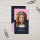 Moderne Visitenkarte mit elegantem Bogendesign, trendiger Rosa- und Marinefarben und QR-Code für den schnellen Zugriff auf Ihre Website oder Buchungsseite. Ideal für Friseure, Salons, Friseure und Schönheitsexperten, die ihre Marke stilvoll präsentieren möchten. Personalisieren Sie Ihren Namen und Ihre Kontaktdaten für eine berufliche, einzigartige Touch.