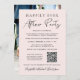 Chic hellrosa Dekoration oder private Hochzeitsankündigung und Hochzeitsempfang Einladung. Die Vorderseite zeigt "Happily Ever After Party" in einfacher Typografie und einem modernen Drehbuch. Personalisieren Sie Ihre Nachricht und Einladung detaillierter, erstellen Sie einen QR-Code, der mit Ihrer Hochzeitswebsite verknüpft ist, damit Sie online UAWG haben und auf andere Details zugreifen können, und fügen Sie Ihre Namen in einem signaturähnlichen Skript hinzu. Auf der Rückseite finden Sie Ihr Lieblings-Foto, Ihre Vornamen und Ihr Hochzeitstermin.