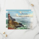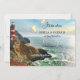 Küste Leuchtturm Save the Date Karte. Dies ist eine Fantasieszene, kein existierendes Ortsbild (soweit ich weiß :-)). Träumen von einer wunderbaren Zukunft zusammen. Auf der Rückseite ist Ihr eigenes Foto in einem nautisch gestreiften Design. Eine QR-Code-Vorlage bietet die Möglichkeit, einfach auf Ihre eigene Website zu verlinken.