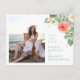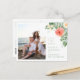 Auf dieser Save the Date Postkarte finden Sie ein Foto und einen Strauß mit Rose aus Pfirsich und Korallen. Der Rücken hat einen Farbspritzer mit Platz für Ihre Rücksendeadresse, Nachricht und QR-Code