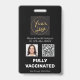 Editieren Sie diese Vorlage einfach, um Ihr eigenes ID-Foto, den Impfstoff-QR-Code und persönliche Daten hochzuladen. Hinzu kommen die Rückgabeinformationen. Business Foto QR Code Impfstoff ID Abzeichen.