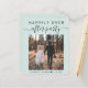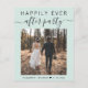 Günstige helle Minze grüne Vorbereitung oder private Hochzeitsankündigung und Empfang Einladung. Die Vorderseite zeigt Ihr Hochzeitstag Foto und "Happily Ever After Party" in einfacher Typografie und einem trendigen Drehbuch mit Swashes. Fügen Sie unter Ihrem Foto Ihre Vornamen und Ihr Hochzeitstermin hinzu. Auf der Rückseite, personalisieren Sie Ihre Hochzeitsankündigung und Empfang-Einladung im Detail, geben Sie Ihre Website-Adresse Ihrer Hochzeit URL-Adresse, um einen QR-Code für Gäste zu scannen, um Ihre Hochzeitsfeier, alle Einzelheiten und UAWG online, und fügen Sie Ihre Namen in einem signaturähnlichen Skript.