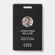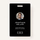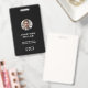 Verbessern Sie Ihre Unternehmenssicherheit mit unserem Custom Foto QR Code Mitarbeiter ID Abzeichen. Dieses Abzeichen besticht durch ein individualisierbares Foto an Mitarbeitern, Namen und Titel auf der Vorderseite, zusammen mit Ihrem Logo. Es besticht durch Professionalität und Funktionalität. Die Rückseite bietet Platz für einen benutzerdefinierten QR-Code, Firmennamen und Anschrift oder personalisierten Text, der eine umfassende Identifizierung Ihrer Mitarbeiter ermöglicht. Dieses Abzeichen mit schwarzem Hintergrund und weißer klassischer Typografie bietet ein modernes, minimalistisches Design, das für jedes Geschäftsumfeld geeignet ist. Erhöhen Sie Ihr Corporate Branding und Ihre Sicherheitsmaßnahmen durch unsere individuell anpassbare ID-Abzeichen-Lösung.