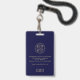 Verbessern Sie Ihre Unternehmenssicherheit mit unserem Custom Foto QR Code Mitarbeiter ID Abzeichen. Dieses Abzeichen mit individualisierbarem Foto, Namen und Titel auf der Vorderseite und Ihrem Logo verströmt Professionalität und Funktionalität. Die Rückseite bietet Platz zum Hochladen eines benutzerdefinierten QR-Codes und zur Anpassung Ihres Firmennamens und Ihrer Firmenanschrift oder personalisierten Textes, was eine umfassende Identifizierung Ihrer Mitarbeiter ermöglicht. Dieses Abzeichen mit elegantem marineblau-Hintergrund und goldener klassischer Typografie bietet ein modernes, minimalistisches Design, das für jedes Geschäftsumfeld geeignet ist. Erhöhen Sie Ihr Corporate Branding und Ihre Sicherheitsmaßnahmen durch unsere individuell anpassbare ID-Abzeichen-Lösung.