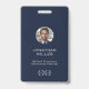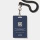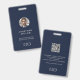 Verbessern Sie Ihre Unternehmenssicherheit mit unserem Custom Foto QR Code Mitarbeiter ID Abzeichen. Dieses Abzeichen besticht durch ein individualisierbares Foto an Mitarbeitern, Namen und Titel auf der Vorderseite, zusammen mit Ihrem Logo. Es besticht durch Professionalität und Funktionalität. Die Rückseite bietet Platz für einen benutzerdefinierten QR-Code, Firmennamen und Anschrift oder personalisierten Text, der eine umfassende Identifizierung Ihrer Mitarbeiter ermöglicht. Dieses Abzeichen mit seinem marineblau-blauen Hintergrund und der grauen klassischen Typografie bietet ein modernes, minimalistisches Design, das für jedes Geschäftsumfeld geeignet ist. Erhöhen Sie Ihr Corporate Branding und Ihre Sicherheitsmaßnahmen durch unsere individuell anpassbare ID-Abzeichen-Lösung.