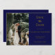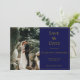 Personalisieren Sie dieses Foto marineblau und goldfarben formelle elegante Hochzeitskarte Save the Date. Fügen Sie Ihre Hochzeitswebsite zum QR-Code hinzu, damit Ihre Gäste Ihre Website einfach scannen können.