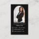 Ein klassischer schwarzer Hintergrund. Die Einrichtung ist mit goldenem Braun gehalten. Personalisieren Sie Ihr Firmenlogo, Ihr Foto, Ihren Namen, Ihren Titel und Ihre Kontaktinformationen. Fügen Sie Ihre Website url/link zum Qr-Code hinzu. Mit Facebook und Instagram Icons. Weißer Text.