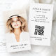 Moderne, senkrechte, weiße Visitenkarten mit Ihrem Namen, Titel und Foto auf der Vorderseite. Anpassbare Vorlagenfelder für Namen, Titel, Kontaktinformationen und QR-Code auf der Rückseite. Sie können Hintergrund- und Schriftart-Farben ändern, Elemente verschieben und verändern. Folgen Sie uns auf Facebook: @business stationery für weitere Produkte, News, Verkäufe und mehr.