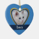 Fügen Sie dem blauen und goldenen Rahmen dieses blauen Herzens ein Foto Ihrer Katze, Ihres Hundes oder einer anderen Furie oder eines anderen Freundes mit Federn oder Federn hinzu. Geben Sie den Namen Ihres Haustieres ein, um auf dem dunkelblauen Band unten zu erscheinen, und Sie haben ein wunderschönes personalisiertes Ornament, um einem viel geliebten Tierfreund zu ehren. Die 'Immer in meinem Herzen' Nachricht auf der Rückseite dieses Ornaments ist ebenfalls vollständig anpassbar.