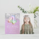 Foto Rainbow Sparkle 4. Geburtstag Einladung Glitzer 4. Geburtstag Party Einladung für ein 4-jähriges Mädchen mit modernem Drehbuch und lustigen Folienballons.