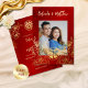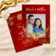 Diese elegante chinesische Hochzeitseinladung besticht durch ein Foto und eine echte Goldfolie rund um das Gold, ein doppeltes Glückssymbol und vergoldete Blume auf einem blumenrubinrot schimmernden Hintergrund. Braut und Bräutigam Namen in einem eleganten, handgeschriebenen Skript. Einladung zur chinesischen Hochzeit oder Teezeremonie.