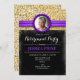 Einladung mit Foto - Lila Gold Black Elegant Design in Imitats Glitzer Gold und Schwarz mit einem Hauch von lila. Ideal für ein weibliches Party in Rente.