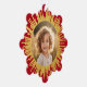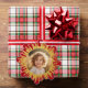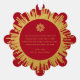Rote, schneeflockenförmige Weihnachtsschmuckkarte mit Ihrem individuellen Foto in einem Retro, goldener Farbverlauf (gedrucktes Bild, nicht echte Folie), Sonnenburstrahmen. Anpassbarer Text auf der Rückseite.