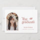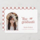 Ankündigung von Retro Type Abschluss Foto. Merkmale, Single-Rahmen-Foto, Grader-Kappe-Akzent, Retro-Typografie in staubigen Rose rosa und Koordination Schachbrett-Muster-Rückseite.