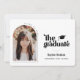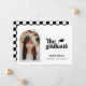 Ankündigung von Retro Type Abschluss Foto. Merkmale, Single-Rahmen-Foto, Grader-Kappe-Akzent, Retro-Typografie in schwarz und koordinieren Schachbrett-Muster-Rückseite.