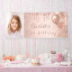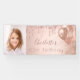 Für eine mädchenhafte 10. Geburtstagsfeier (oder jedes Alter). Eine Rose Gold Imitate metallisch aussehend Hintergrund. Dekoriert mit Rose Gold, rosa Imitat Glitzer Tropfen, Farbe Tropfen Aussehen, Glitzer Tropfen und Ballons. Personalisieren und fügen Sie ein Foto und den Namen. Perfekt sowohl als Begrüßungsbanner als auch als Party. Verwenden Sie ein Foto in vertikaler/porträtgroßer Größe.