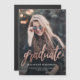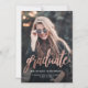 Moderne magnetische Abschluss-Ankündigung mit einem benutzerdefinierten vertikalen Foto. Das Wort "Absolvent" erscheint in der Rose Gold-Imitat-Folienskript, mit dem Namen des Absolventen, Schule und Jahr des Abschlusses unten in weißen Sans Serif Schriftart. Ersetzen Sie das Beispielbild einfach durch das Foto Ihres eigenen Absolventen. Ein Schwarzer Farbverlaufsbildschirm trägt dazu bei, die Pop des Textes zu gewährleisten. Ideal für High School oder Uni-Abschluss.