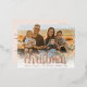 Die Foto Rose Gold Foil Holiday Postkarte verfügt über ein niedliches Schneeüberlagerungsstück mit einer eleganten Rose Goldschrift. Auf der Rückseite befindet sich Text zum Personalisieren.