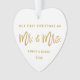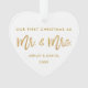 Modernes Goldbürsten-Skript unser erstes Weihnachten als Herr und Frau White und Goldherz-Verzierung - Foto-Rückseite
