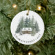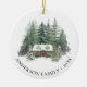 Fügen Sie Ihr Foto und Ihren Namen zu diesem niedlichen Weihnachtsweihnachtsschmuck mit einer Aquarellszene mit einer gemütlichen Hütte im Schneewald vorne und einer Fotovorlage auf der Rückseite. Bitte kontaktieren Sie mich über den Zazzle Chat, wenn Sie Designschwächen oder andere Farbtöne benötigen.