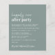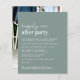 Minimal moderne und preisgünstige Weise Grünen Hochzeitsempfehlung mit "Happily Ever After Party" in zeitgenössischer weißer Schrift und fett-trendiger, weißer Typografie, und Ihre Namen in einem signaturähnlichen Skript. Auf der Rückseite befindet sich das Foto, das mit den Vornamen und dem Hochzeitstag überlagert wird.