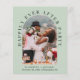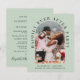 Schick budgetfreundliches schlauer grüner Umbau oder private Hochzeitsankündigung und Einladung zum Empfang. Die Vorderseite zeigt Ihr Foto in einem gewölbten Rahmen und "Happily Ever After Party" in eleganter Typografie. Fügen Sie Ihre Vornamen, das Hochzeitdatum und den Ort Ihrer Hochzeit hinzu. Auf der anderen Seite, personalisieren Sie Ihre Ankündigung und Einladung detaillierter und fügen Sie Ihre Namen in einem signaturähnlichen Skript.