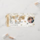 Destination Beach Wedding Boarding Pass Ticket Gold Flugzeug Save the Date mit Herz und Flugzeug Ikone mit tropischen Blätter. Foto hinzufügen