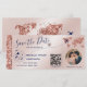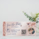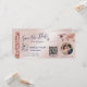 Destination Beach Wedding Boarding Pass Ticket Gold Flugzeug Save the Date mit Herz und Flugzeug Ikone mit Glitzer Rose Gold Weltkarte. Foto und qr-Code hinzufügen