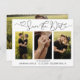 Moderne 4 Fotos von Ehepaar Wedding Save the Date Ankündigung Karte Vorlage mit Website-Informationen und niedliches Herz in Script Schriftart.