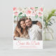 Rosa pfirsichfarbene florale Foto Save the Date Karte, mit einem sehr leichten peri Waschtextur Hintergrund. Passen Sie Namen, Daten und Informationen an.